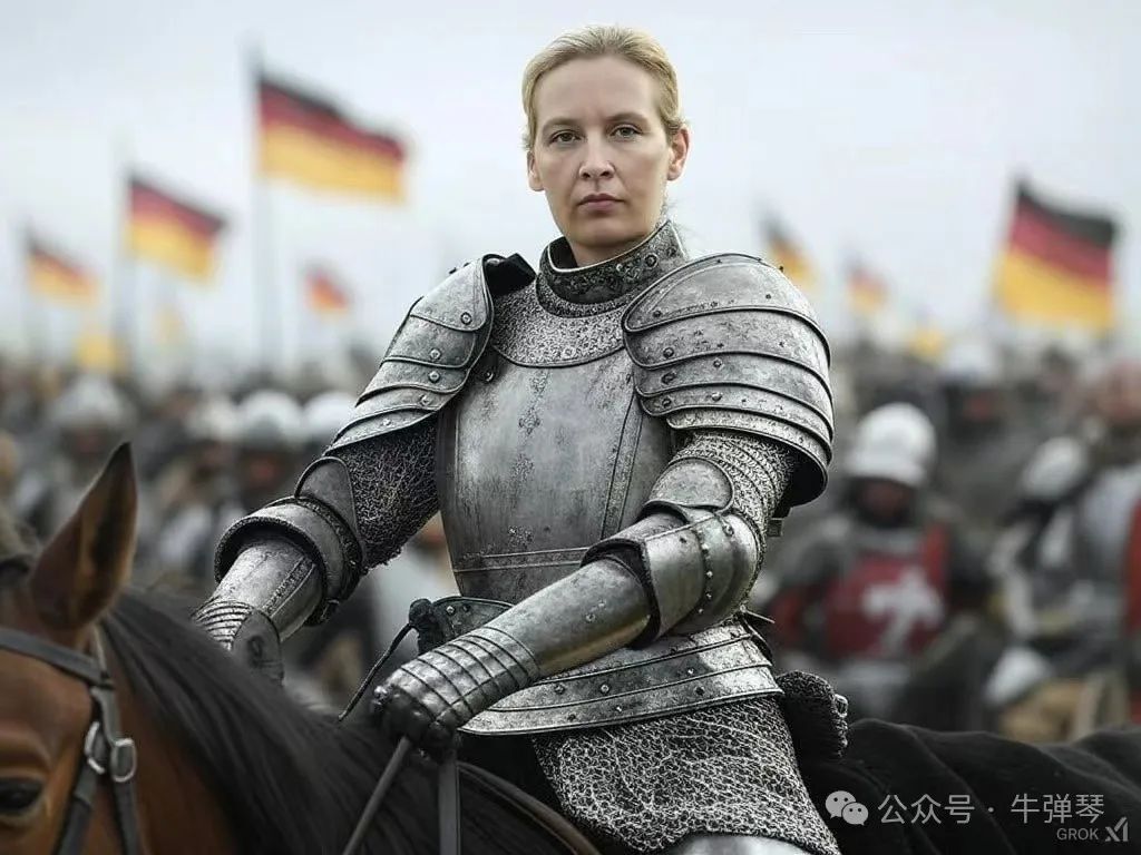比如,德国2月23日大选,已经是这个敏感节骨眼,马斯克依然“举贤不避亲”,站台德国极右翼政党选择党,甚至贴出一身中世纪戎装的选择党领袖魏德尔,认为这才是拯救德国的唯一希望。